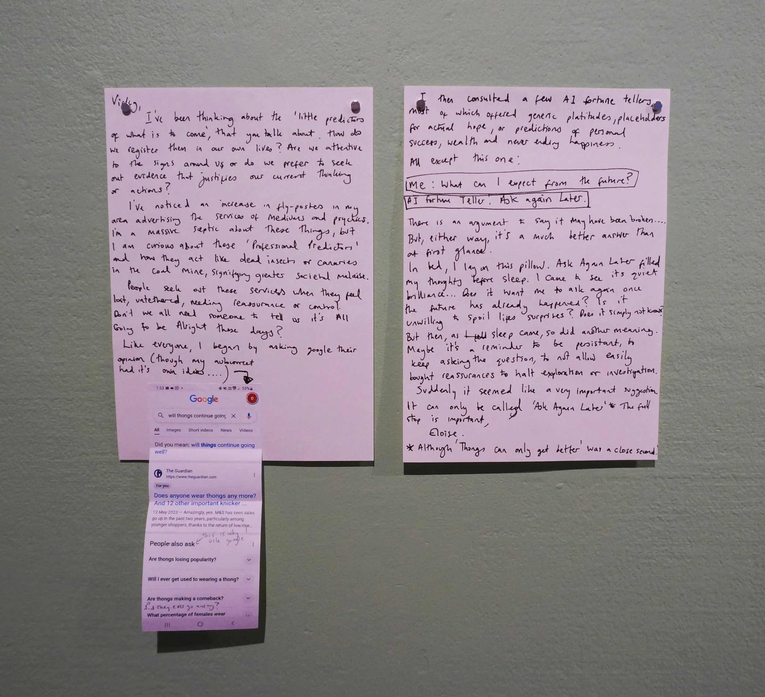 Letters, paper, pillow, silk - Everyday materials from the studios of Vicky Long and Eloise Moody
